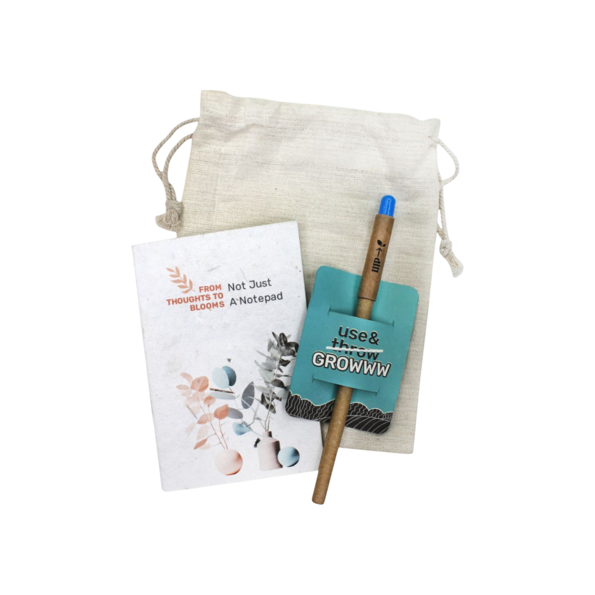 - Product Details : Includes a Paper Pen, a Plantable Notepad packed in a Cotton Bag